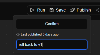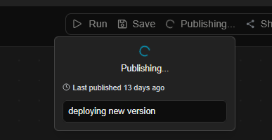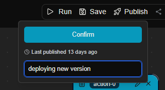 Importantly any changes you have made which are visible in the current state of the canvas below are always considered a draft version. That means the current canvas, i.e. your current draft of the assistant is the thing which will be deployed when you click publish. Deploying this draft will automatically version the new assistant asv2
