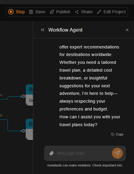 Once you have completed building your assistant you can test it is working correctly by clicking theRun