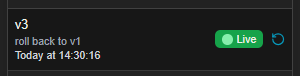 The currently deployed version is clearly indicated with the live label.